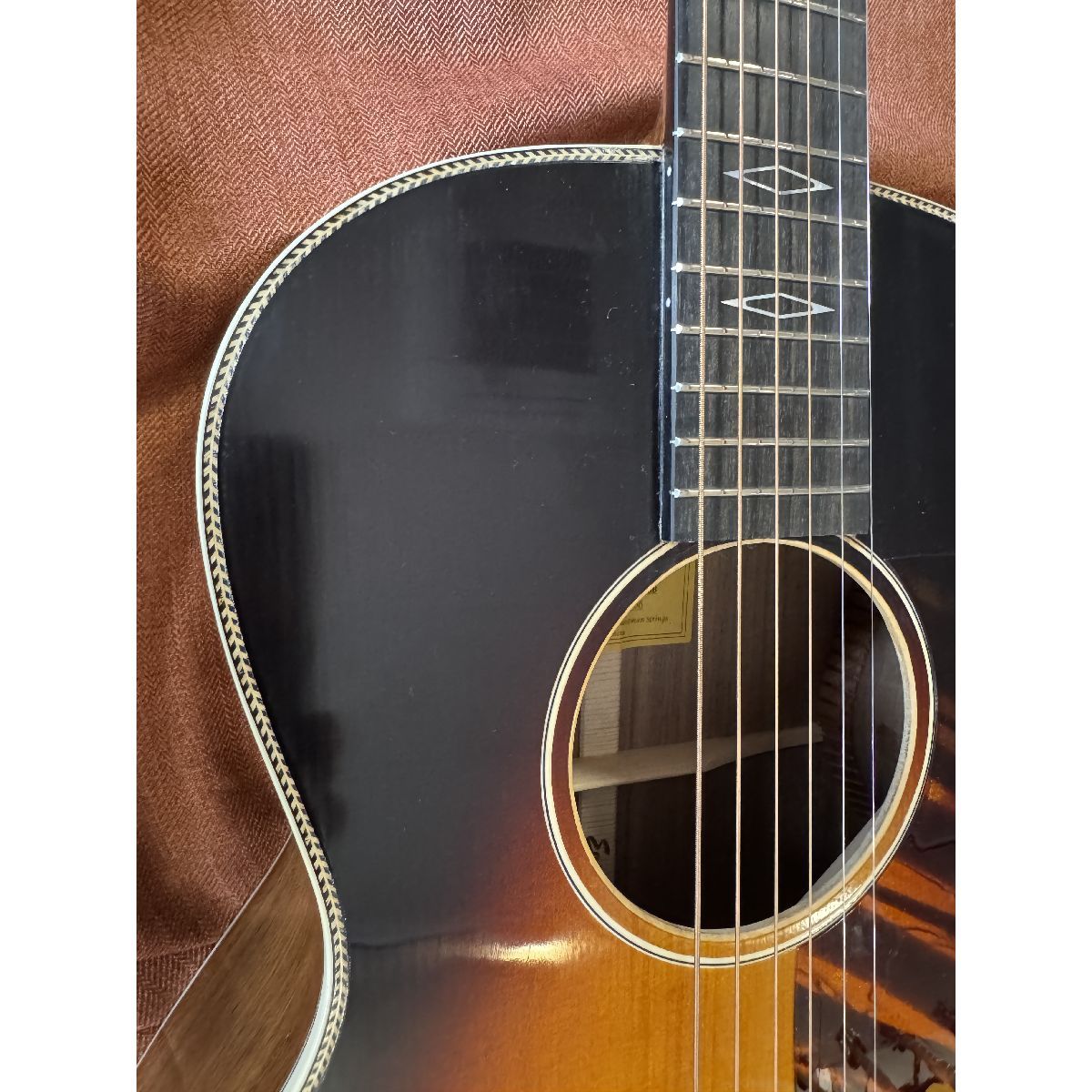 Un équilibre parfait entre les six cordes, le binding en pur nacre provenant d’ormeaux, coquillage recherché pour ses couleurs vibrantes, du palissandre des Indes, de l’ébène, de l’épicéa et des mécaniques vintage, donnent un look classique à ce son intemporel.
